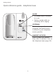 Getting started Installation options Wall mount to desktop installation To change the telephone base from the wall mount position to desktop position, make sure that you first unplug the power adapter and telephone line cord from the wall outlets before you begin. 1 1. Slide the telephone base upwards, then pull the telephone base away from the wall off of the mounting studs. 2 2. Unplug the power adapter and the telephone line cord from the electrical outlet and the telephone jack. 3.
