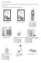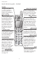 Getting started Quick reference guide - telephone base IN USE • On steady when a handset is in use. • Flashes quickly while an incoming call is ringing. ANNC. HANDSET LOCATOR Press to make the handset beep when a handset is not on the telephone base (page 16). RECORD Answering System Functions Press to start or stop message playback (page 37). MESSAGE COUNTER Number of messages (or during playback, message number currently playing). SKIP Press to skip message (page 37).