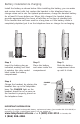 Battery installation & charging Install the battery as shown below. After installing the battery, you can make and receive short calls, but replace the handset in the telephone base or charger when not in use. For optimal performance, charge the handset battery for at least 16 hours before use. When fully charged, the handset battery provides approximately five hours of talk time or six days of standby time.