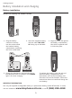 Getting started Battery installation and charging Battery installation Install the battery as shown below. 1. Plug the battery connector securely into the socket inside the handset battery compartment, matching the color-coded label. 2. Insert the supplied battery with the label THIS SIDE UP facing up as indicated. 3. Align the cover flat against the battery compartment, then slide it upwards until it clicks into place. CHARGE light 4.