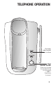 TELEPHONE OPERATION Handset Volume Adjust volume of what you hear through the handset. Redial Follow the instructions under “Make or Answer a Call,” then press R to call the last number dialed (up to 24 digits). Make or Answer a Call End a Call Place handset in base — OR — Press O. Lift handset from base — OR — Press P and wait for light to go on steadily. Exit programming. Cancel a page. Flash/ Call Waiting Access special telephone company subscriber services.