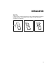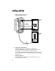 INSTALLATION Modular telephone jack Standard electrical outlet Strain-relief groove Power cord Long telephone line cord The instructions below are for both table and wall installation. 1 Choose a spot near an electrical outlet and a telephone jack. This phone requires a modular telephone jack and a standard electrical outlet (110v AC) not controlled by a wall switch. 2 Install the handset battery. (For an illustration of battery installation, see the BATTERIES section of this manual.