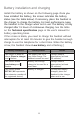 Battery installation and charging Install the battery as shown on the following page. Once you have installed the battery, the screen indicates the battery status (see the table below). If necessary, place the handset in the charger to charge the battery. For best performance, keep the handset in the charger when not in use. The battery is fully charged after 11 hours of continuous charging. See the table on the Technical specification page in the user’s manual for battery operating times.