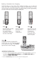 Battery installation & charging Install the battery as shown below. After installing the battery, you can make and receive short calls. For optimal performance, charge the handset battery for at least 16 hours before use. When fully charged, the handset battery provides approximately five hours of talk time and three days of standby time. Step 1 Step 2 Step 3 Plug the battery securely into the plug inside the handset battery compartment, matching the color-coded label.