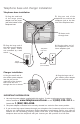 Telephone base and charger installation Telephone base installation 2. Plug one end of the 1. Plug the small end telephone line cord into the telephone jack at the bot tom of the telephone base. of the larger power adapter into the power jack at the bottom of the telephone base. 3. Route cords through slots. 4. Plug the other end of 5. Plug the large end of the larger power adapter into an power outlet not controlled by a wall switch.