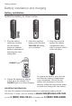 Getting started Battery installation and charging NOTES: • If you are on a call in low battery mode, you hear four short beeps every 50 seconds. • When you place the handset in the charger, if no battery is installed in that handset, the CHARGE light is off and the screen shows NO BATTERY. Follow the instructions in Battery installation on page 6 to install the battery.