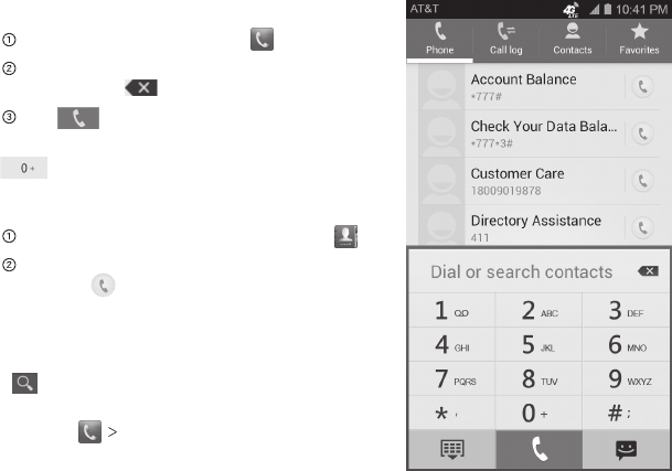 Tip: To make international calls, tap and hold