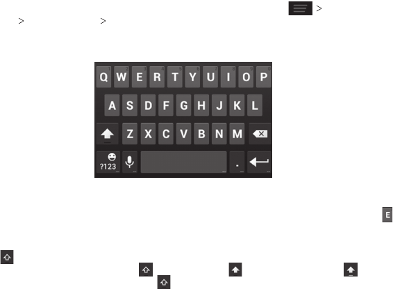 • Tap to use uppercase or lowercase letters. This key also changes to indicate