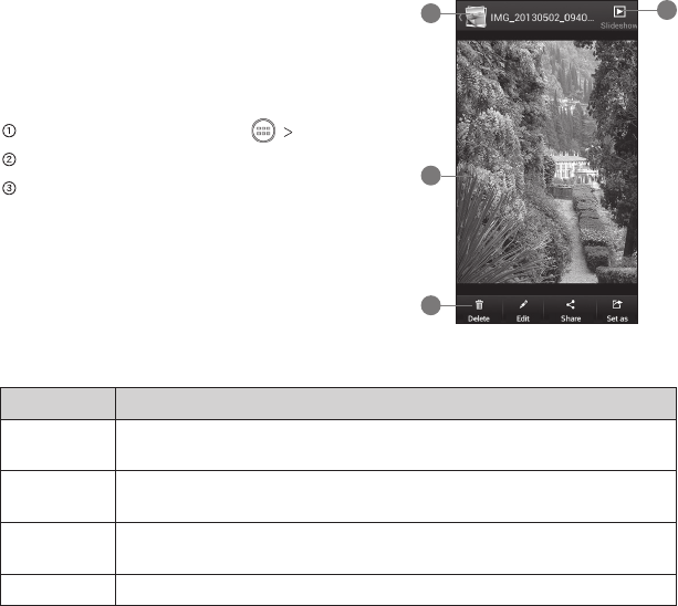 Delete, edit, share, or set the picture as contact photo, wallpaper,