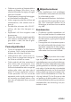 • • • • • Gaflerne og enden af drejespiddet er spidse og skarpe. Når de er i brug, skal de behandles forsigtigt, så ingen kommer til skade. Regelmæssig rengøring forebygger, at overfladerne nedbrydes. Inden rengøring skal der slukkes på stikkontakten, eller stikket skal tages ud. Se altid efter, at ovnen står i »SLUK”stilling, når den ikke længere er i brug. Apparatet må ikke rengøres med damprenser. Brug ikke slibende rengøringsmidler eller skarpe metalskrabere.