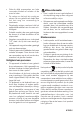 • • • • • • • viennent chauds pendant la cuisson : tenez les enfants éloignés de l’appareil ! Si vous branchez d’autres appareils électriques à des prises situées à proximité du four, contrôlez que les câbles n’entrent pas en contact avec des brûleurs chauds et qu’ils ne restent pas coincés dans la porte du four. Munissez-vous toujours de gants pour retirer les plats du four, une fois la cuisson terminée. Les fourches et la broche du tournebroche sont pointues et tranchantes.