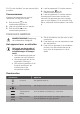 EN CAS D'ANOMALIE DE FONCTIONNEMENT AVERTISSEMENT! Reportezvous aux chapitres concernant la sécurité. En cas d'anomalie de fonctionnement... Problème Cause probable Solution Le four ne chauffe pas. Le four est éteint. Mettez le four en marche. Le four ne chauffe pas. L'horloge n'est pas réglée. Réglez l’horloge. Le four ne chauffe pas. Les réglages nécessaires n'ont pas été effectués. Vérifiez que les réglages sont corrects. Le four ne chauffe pas. Le fusible a disjoncté.
