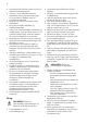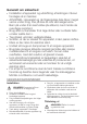 Grøntsager Madvare Temperatur (°C) Tid (t) Bønner 60 - 70 Peberfrugt Ovnrille 1 rille 2 riller 6-8 3 1/4 60 - 70 5-6 3 1/4 Suppeurter 60 - 70 5-6 3 1/4 Svampe 50 - 60 6-8 3 1/4 Krydderurter 40 - 50 2-3 3 1/4 Temperatur (°C) Tid (t) Ovnrille Blommer 60 - 70 Abrikoser Frugt Madvare 1 rille 2 riller 8 - 10 3 1/4 60 - 70 8 - 10 3 1/4 Æble, i skiver 60 - 70 6-8 3 1/4 Pærer 60 - 70 6-9 3 1/4 VEDLIGEHOLDELSE OG RENGØRING ADVARSEL! Se kapitlerne om sikkerh