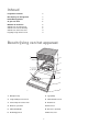 Inhoud Programma-overzicht 2 Beschrijving van het apparaat 3 Het bedieningspaneel 4 Zo gaat u te werk 6 Beladen van de korven Gebruik van de onderste korf Gebruik van het bestekmandje Gebruik van de bovenste korf Regeling hoogte bovenste korf 8 8 8 9 9 Beschrijving van het apparaat 1 12 2 11 3 4 10 5 9 8 7 6 IN86 1. Waterpasnokje 7. Typeplaatje 2. Vergrendeling bovenste korf 8. Glansmiddelreservoir 3. Schroefdop van zoutreservoir 9. Bodemzeef 4. Onderste sproeiarm 10. Afvoerzeef 5.