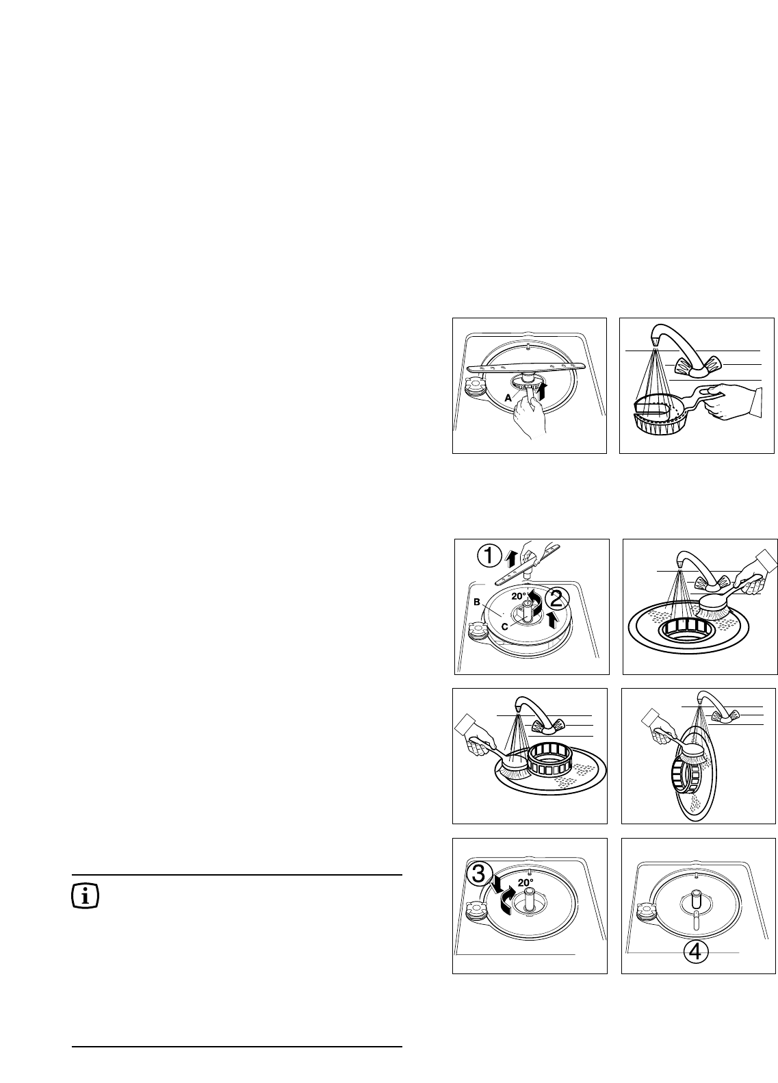 2. Draai het asje (C) 20° naar links en haal de zeef uit
