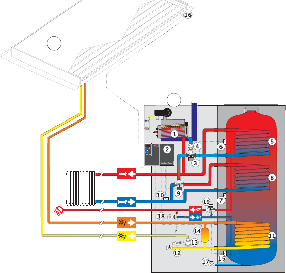 12. Vul-/aftapkraan en overstort collectorcircuit