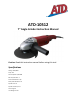 1. Introduction This tool is intended for grinding and deburring metal materials without the use of water. Do not apply pressure on the tool; let the speed of the cutting disc do the work Read and save this instruction manual. Tool specifications: Model ATD‐10512 Voltage (V) Frequency (Hz) Rated Current (A) No‐load speed (Min‐1) Disc dia. (mm) Spindle Thread 60 11 7800 7” 5/8” 120 1. Auxiliary handle 2. Spindle lock button 3. On/off switch 4.