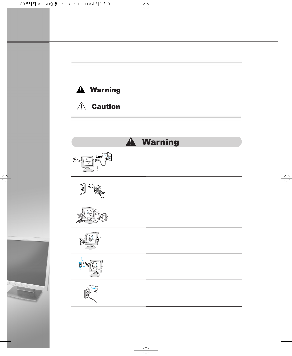 ▶ Matters that demand special attention are divided into ‘Warning’ and