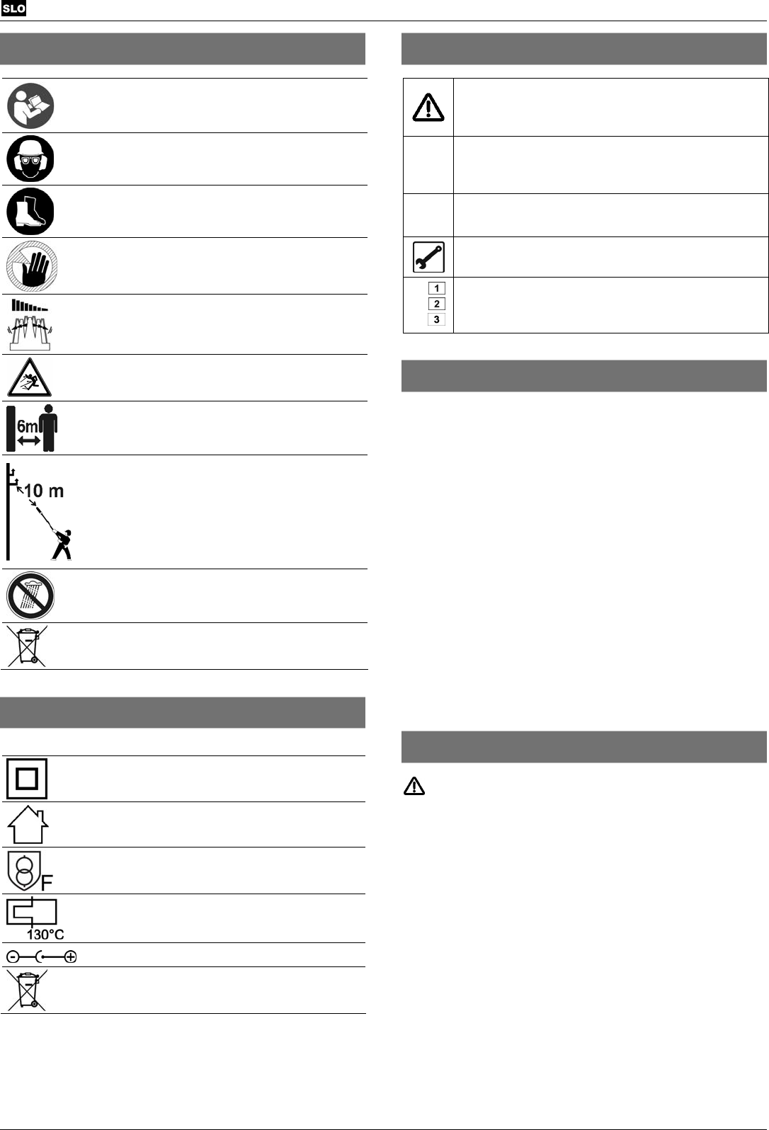 • Nevarnost poškodbe prstov in rok z orodjem (rezilo za travo