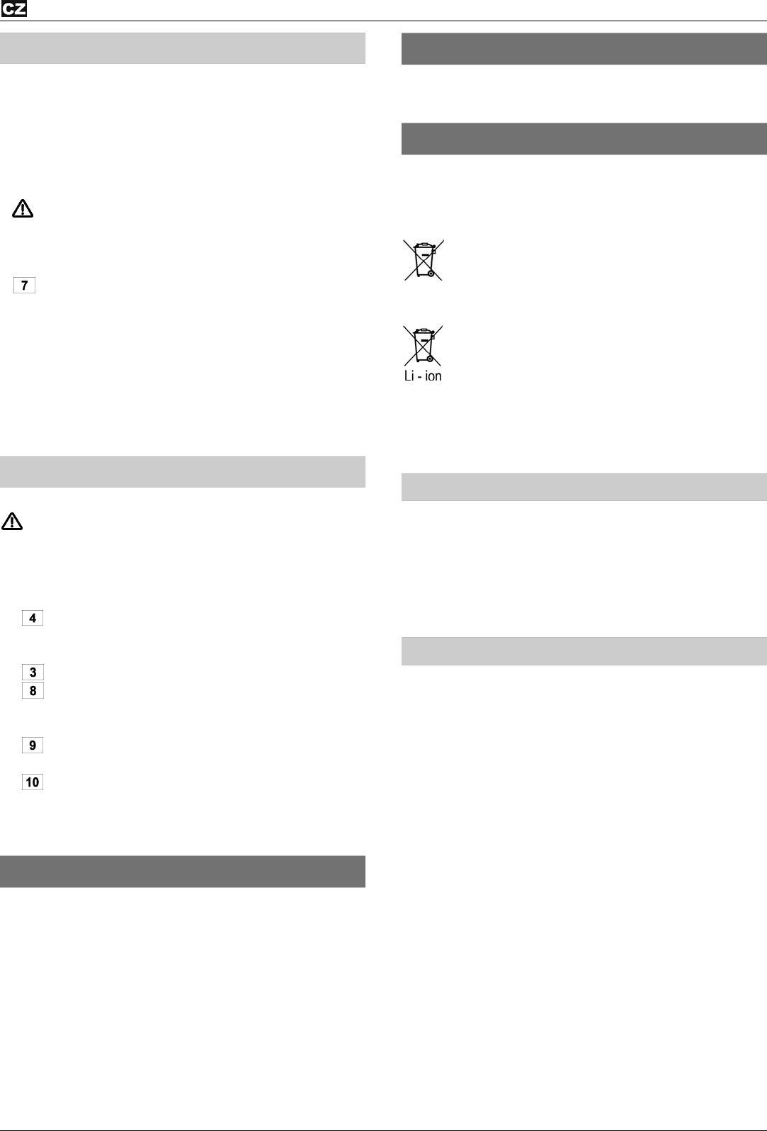 Obsah těchto baterií (ani její část vestavěná v přístroji) leží pod