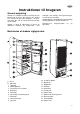 DK V igtig e sikk er hedsop l y sning er Generelle sikkerhedsforanstaltninger Gem denne brugsanvisning. Den er vigtig, hvis skabet senere sælges til andre. Skabet er beregnet til at opbevare almindelige madvarer til husholdningen, og det skal anvendes i overensstemmelse med brugsanvisningen. Service og reparationer, herunder reparation og udskiftning af den elektriske ledning, skal udføres af autoriserede firmaer.