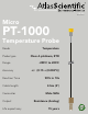 V 1.1 Released 9/21 Micro PT-1000 Temperature Probe Reads Probe type Range Accuracy Reaction Time Cable length Connector Output Life expectancy Temperature Class A platinum, RTD -200˚C to 200˚C +/- (0.15 + (0.