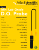 V 1.6 Gen 2 Revised 9/21 Mini Lab Grade D.O. Probe Reads Dissolved Oxygen Range 1 − 50 mg/L Accuracy Response time Temperature range °C Max pressure +/– 0.2 mg/L ~0.5 mg/L/per sec 1 − 50 °C 689 kPa (100PSI) Max depth 70m (230 ft) Connector Male SMA Cable length 45cm (18") Internal temperature sensor Time before recalibration Life expectancy Maintenance No ~6 Months 2.