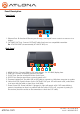 Panel Description Front Panel 1 2 1. Ethernet Port: Bi-directional Ethernet pass through, send signal from a router to a source or to a display. 2. CAT5e/6/7 OUT Port: Connect CAT5e/6/7 cable from here to a compatible transmitter. Ex. AT-HDTX-RSNET (recommended), AT-HDCAT-8ED, etc. Back Panel 7 1 2 3 4 5 6 1. HDMI Out Port: Connect HDMI or DVI (with adapter - Ex. AT14040) display here. 2. IR IN Port: Connect included IR receiver to this port. 3.