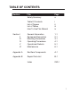 TABLE OF CONTENTS Section Title Page Safety Summary a Table Of Contents List of Figures List of Tables How To Use This Manual i ii iii iv Section I II III IV V VI General Information Equipment Description Mounting Procedures Operating Procedures Operational Defects Maintenance 1-1 2-1 3-1 4-1 5-1 6-1 Appendix A End Item Components A-1 Appendix B Repair Parts List B-1 Index IND-1 i