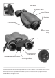 OPERATION • Take the biocular out of the case. • Install the batteries into the housing with the polarity order as shown on the biocular. Battery Type: 3-Volt Lithium, #CR123A. • Press the button marked -/O to turn the unit on with the protective lens covers still attached to the lenses. Do not turn the unit on in the daytime without the protective lens caps on. You should see a green glow in the eyepiece. • Observe the scene and adjust the diopters for the optimal image clarity.