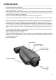 STORAGE AND CARE • If the device is not to be used for an extended period of time (more than 10 days) remove the battery. • Avoid touching lenses. If fingerprints or traces of dirt or dust appear clean the surface with the photographic lens cleaning tissue. • Keep the lens cap/daylight filter on when not in use. • The Night Shadow is not harmful to the user or the environment. • Do not disassemble except to clean the front lens or eyepiece: it will void your warranty.