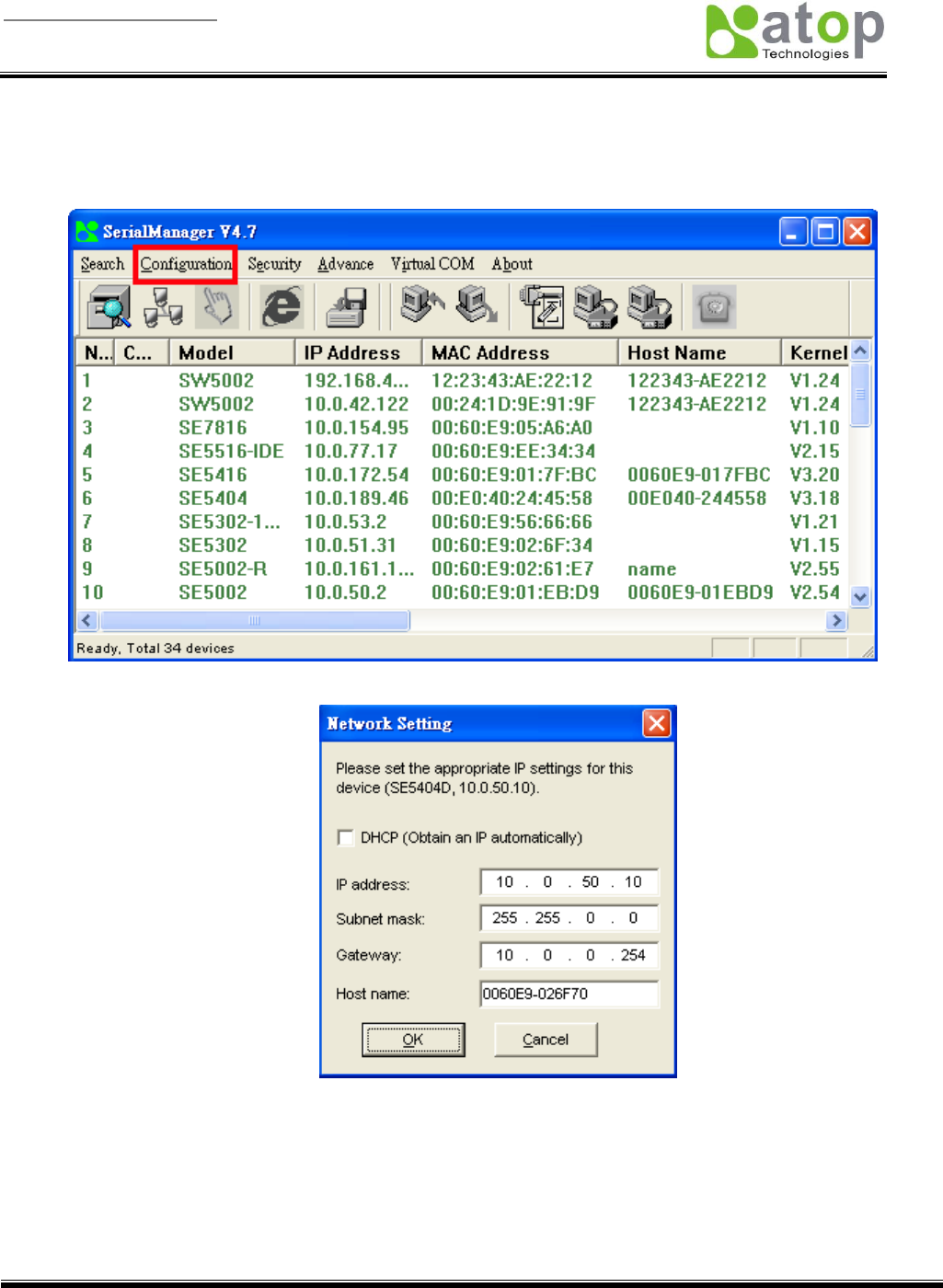 function. By default, the DHCP client function on SE5404D is disabled; one can client use Serial Manager Utility