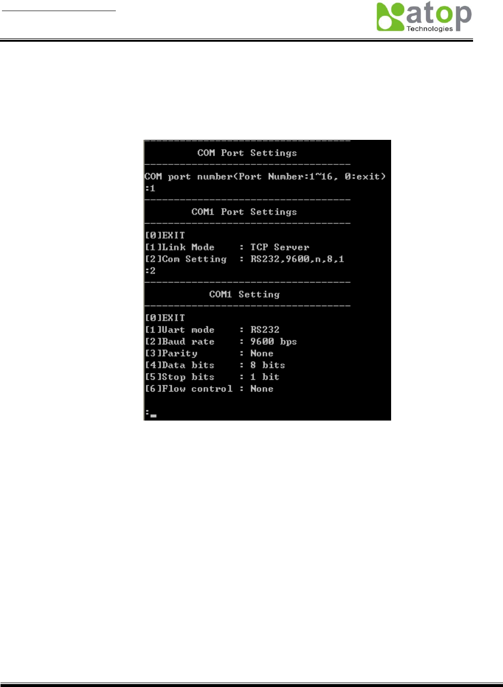 Operation: Main [3]COM Port Setting[1-16]Select Port[2]Com Settings