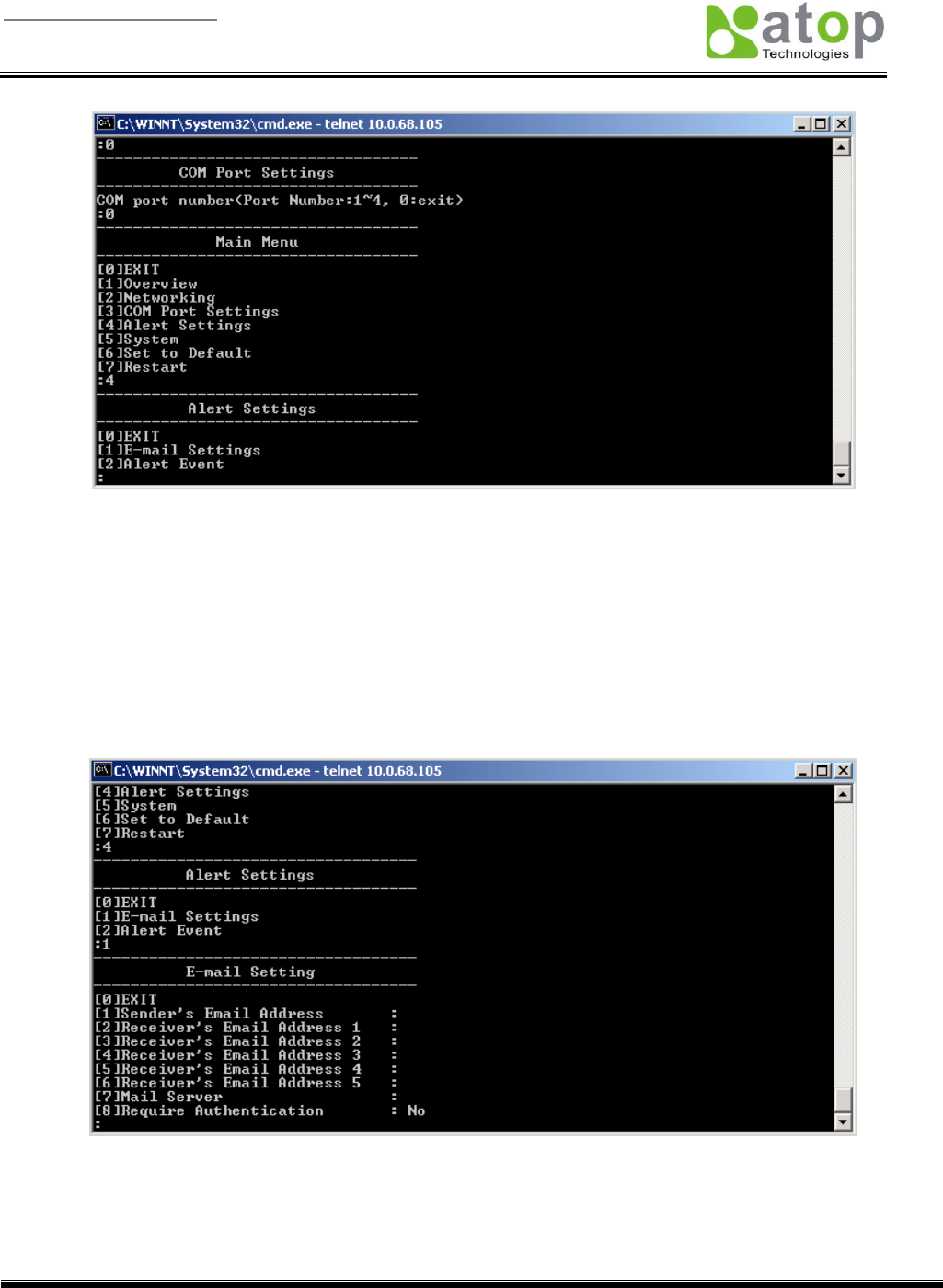 Figure 3.19 Alert Settings by Telnet