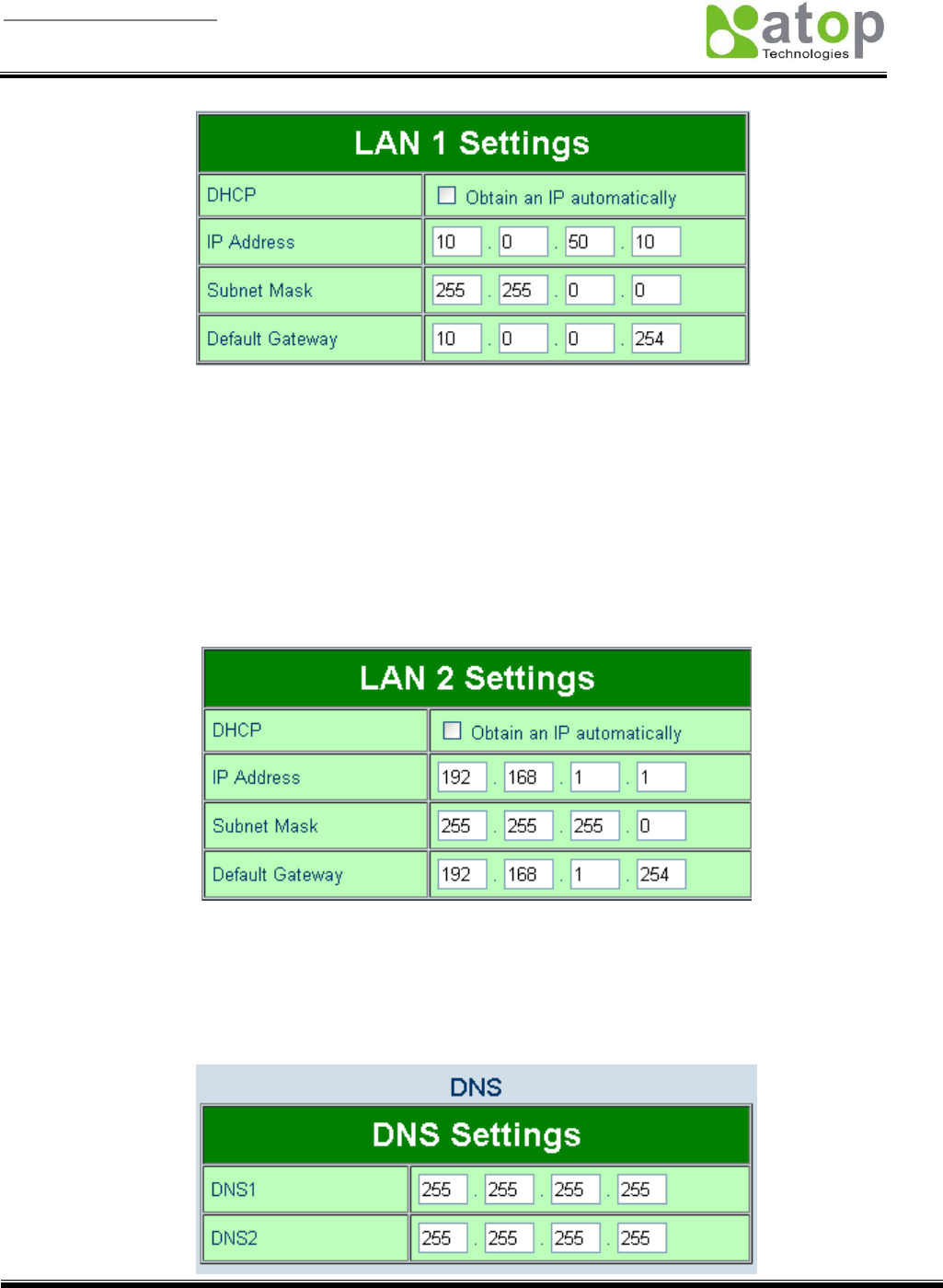 3.3.5 LAN 2 Settings