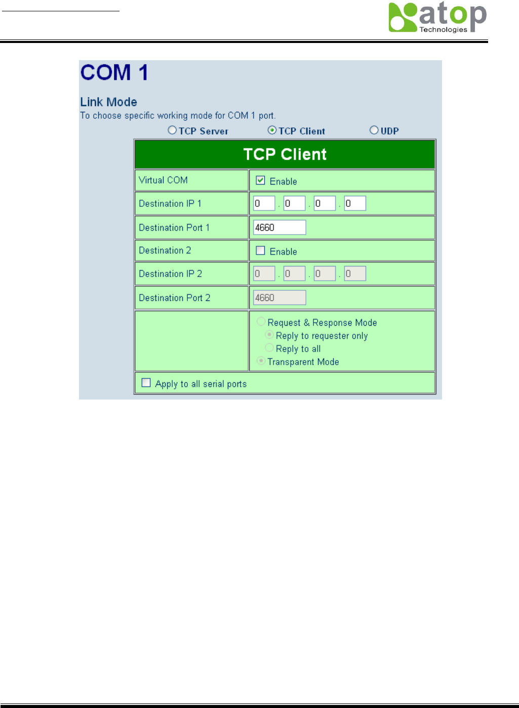 4660 which receive data sending from the host computers) Serial Server can support up to 8-group IP for UDP