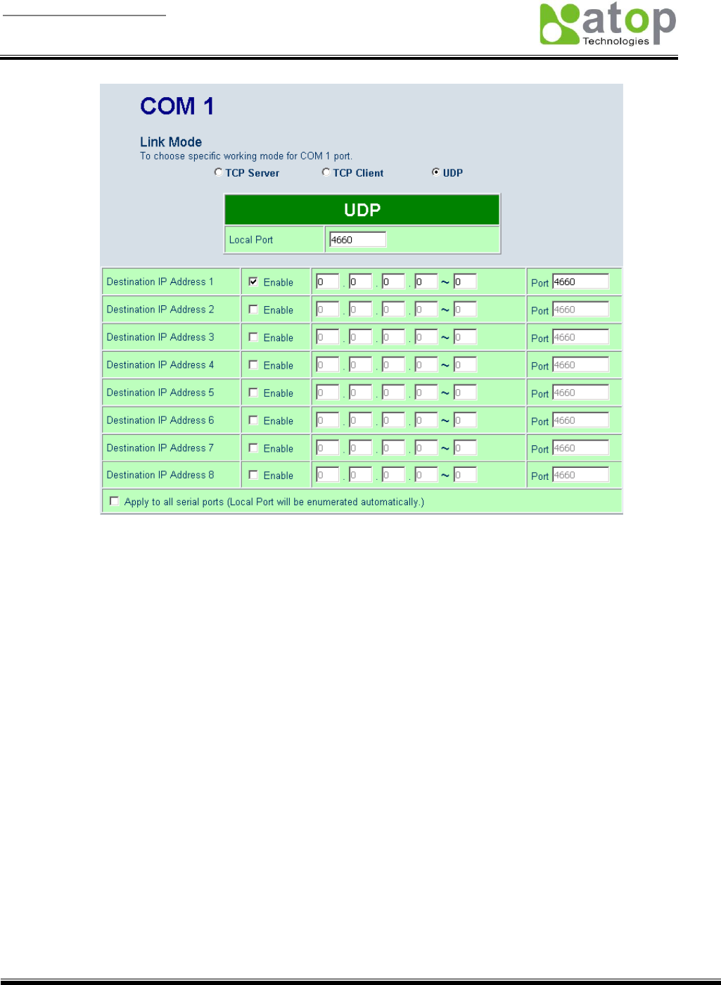 Note: UDP mode doesn’t support Virtual COM mode yet
