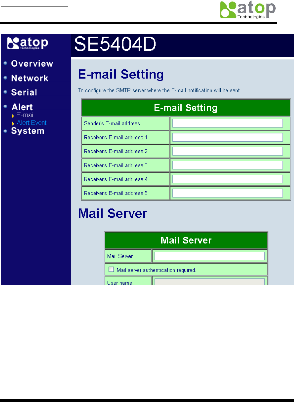 allowed to sent out the email by sender’s E-mail address. The SE5404D allow to definite the receiver up to 5. Also