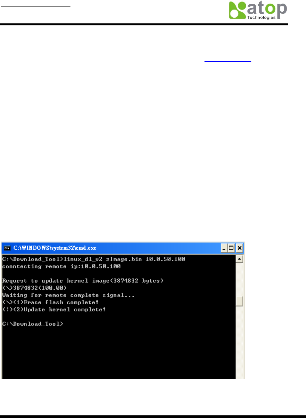 Note : “linux_dl_v2” is the upgrade executable and zImage.bin is the firmware file name;