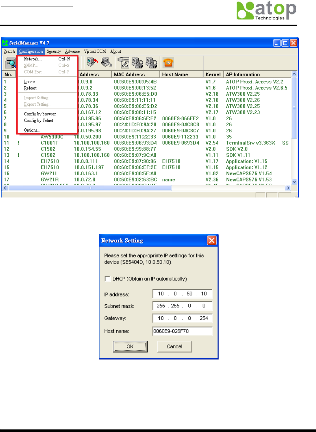 The user can modify the IP address of any selected device, shown as the figure below. You can statically