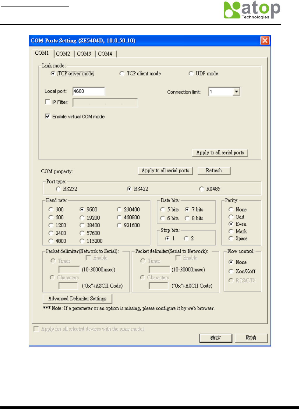 Each COM port corresponds to a link mode, TCP or UDP, which is used to transfer data. The user can set