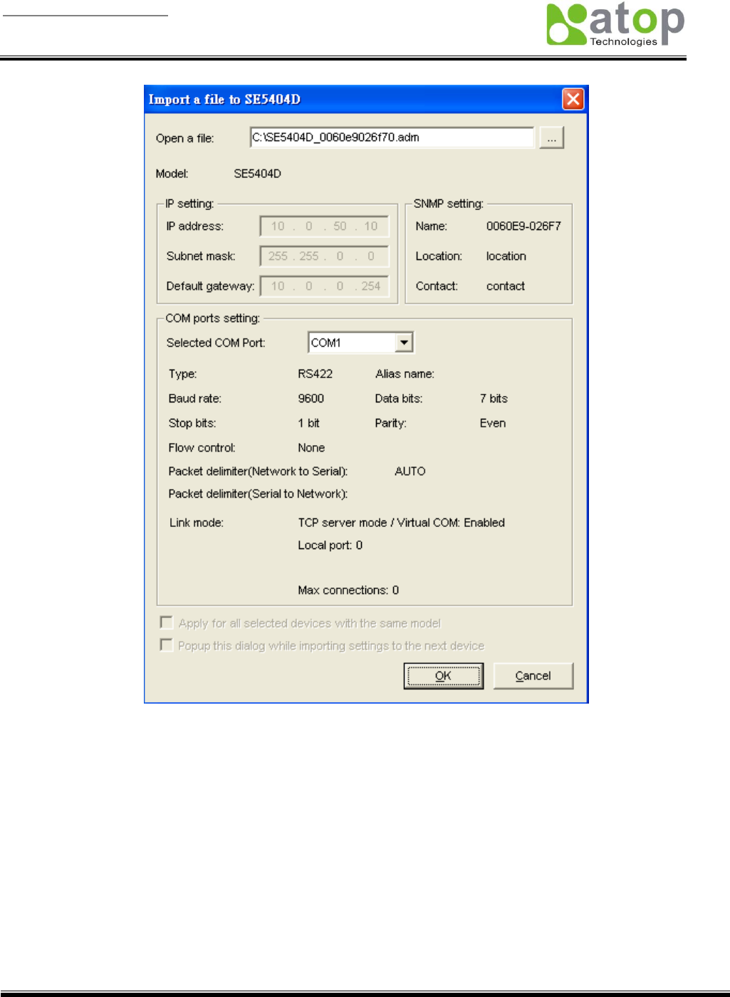 imported to other device. The dialog of Export Setting is shown in the figure below.