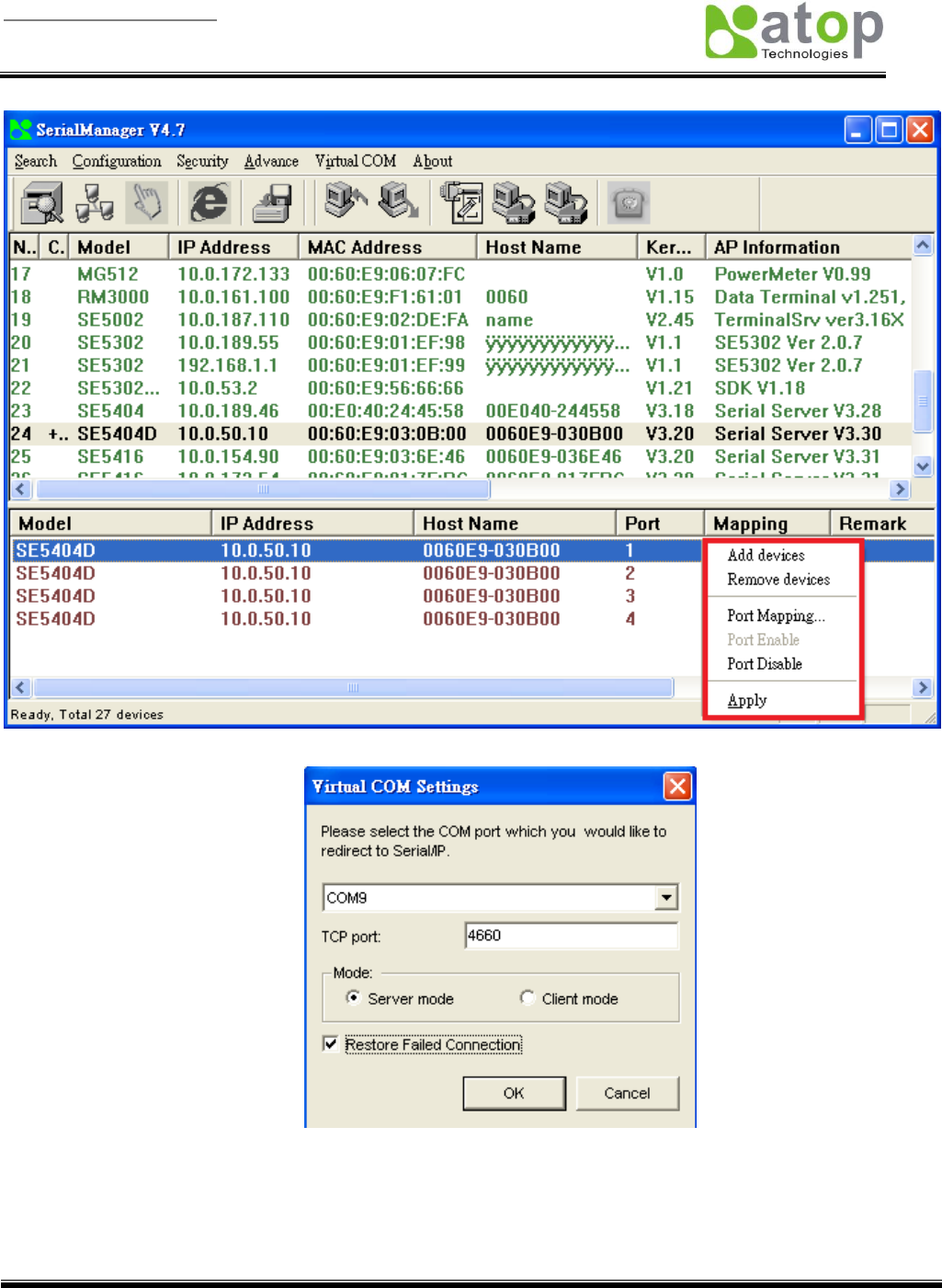 If you select Port Mapping… , a new window would show. You can setup the Virtual COM accordingly.