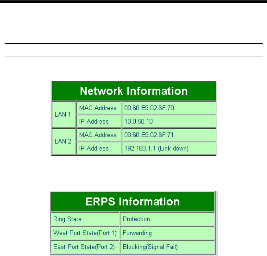 Networking Information, displays both ‘LAN1 and LAN 2’sinformation on the overview page.