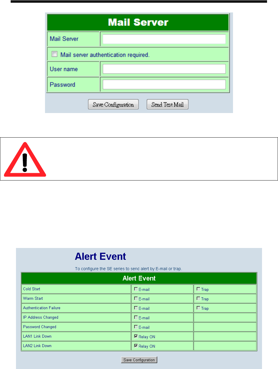 Failure, IP Change, Password Change, and Link Down. SE5416A Series supports three
