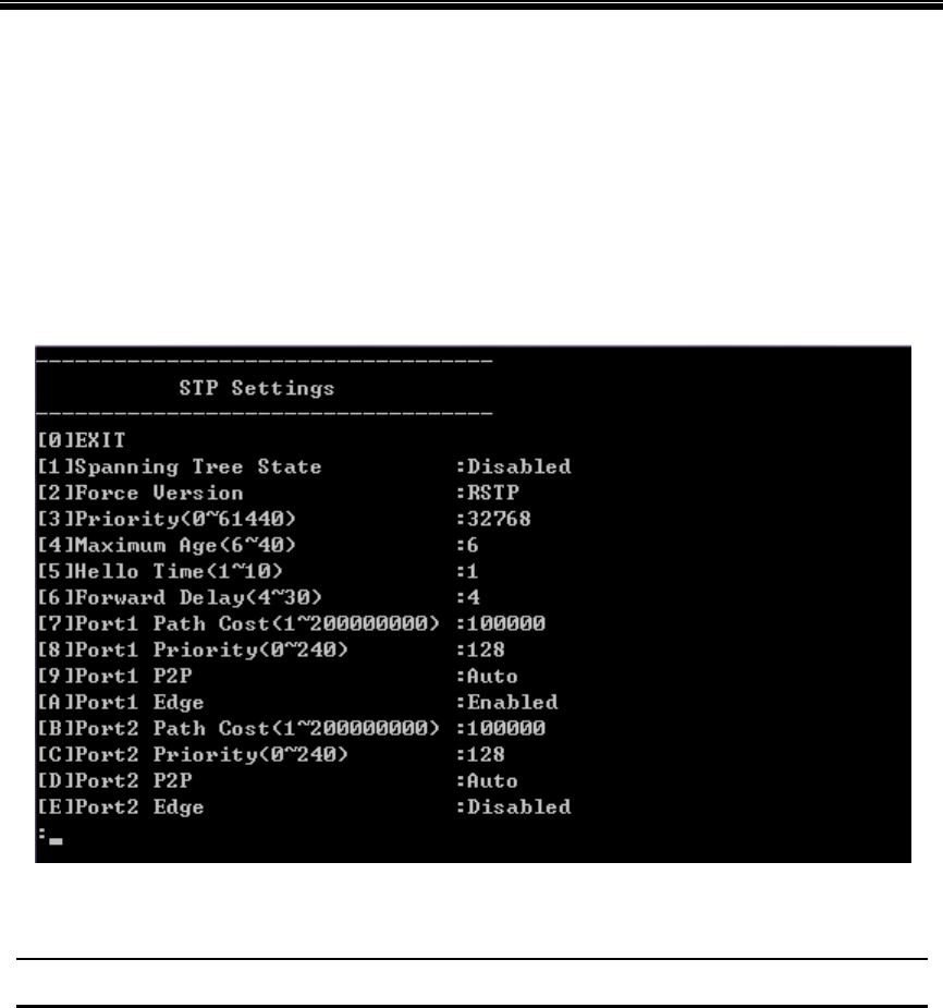 STP function in SE5416A Series can be enabled or disabled. Once enabled, you can set STP