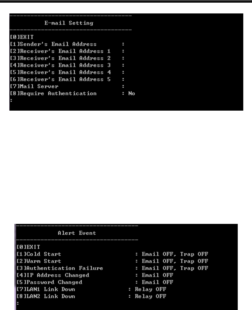 notify that event (Email, Trap, or Relay). Available events are Cold Start, Warm Start,