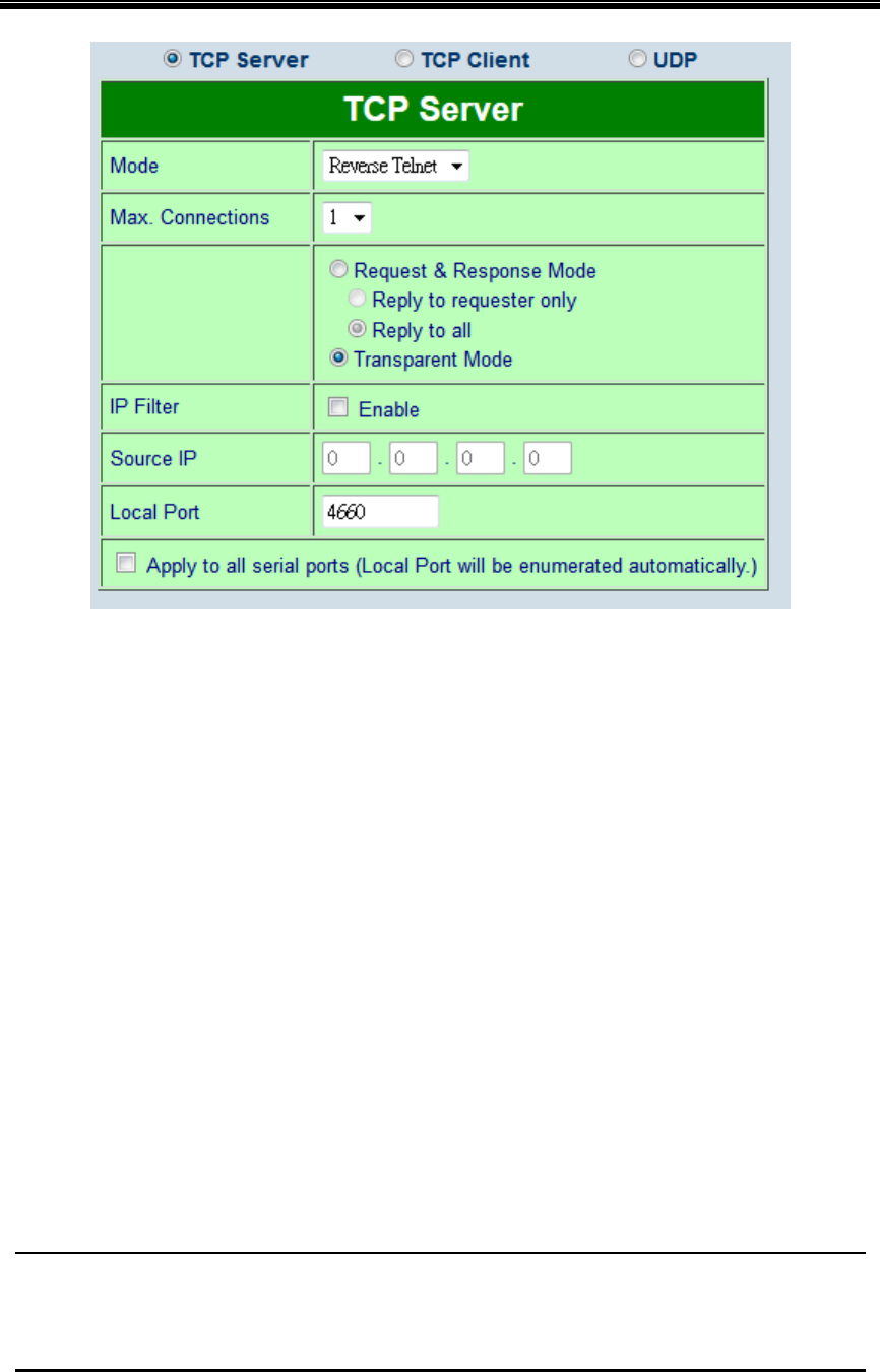 - 7.2.7 TCP Server Application: Enable Reverse Telnet