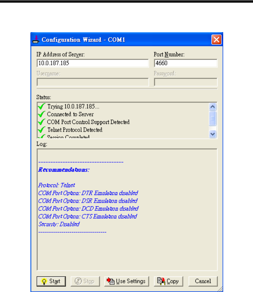 To transfer the settings between Virtual COM ports, click on the Copy Settings To button.