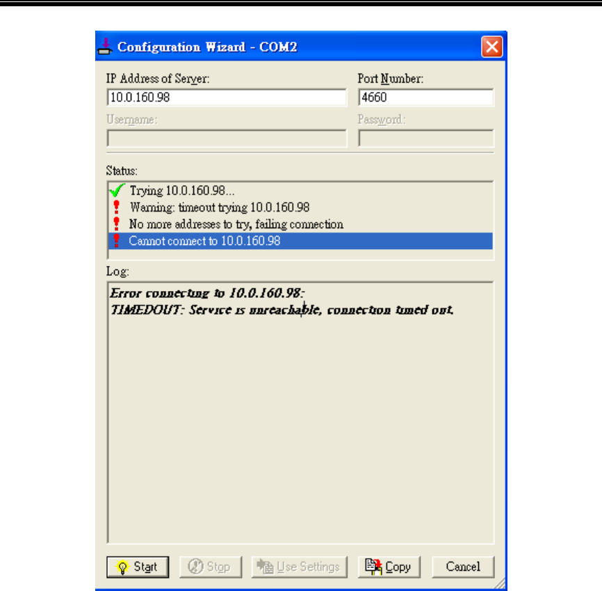 recheck the VCOM IP and Port configuration or the PCs network configuration.